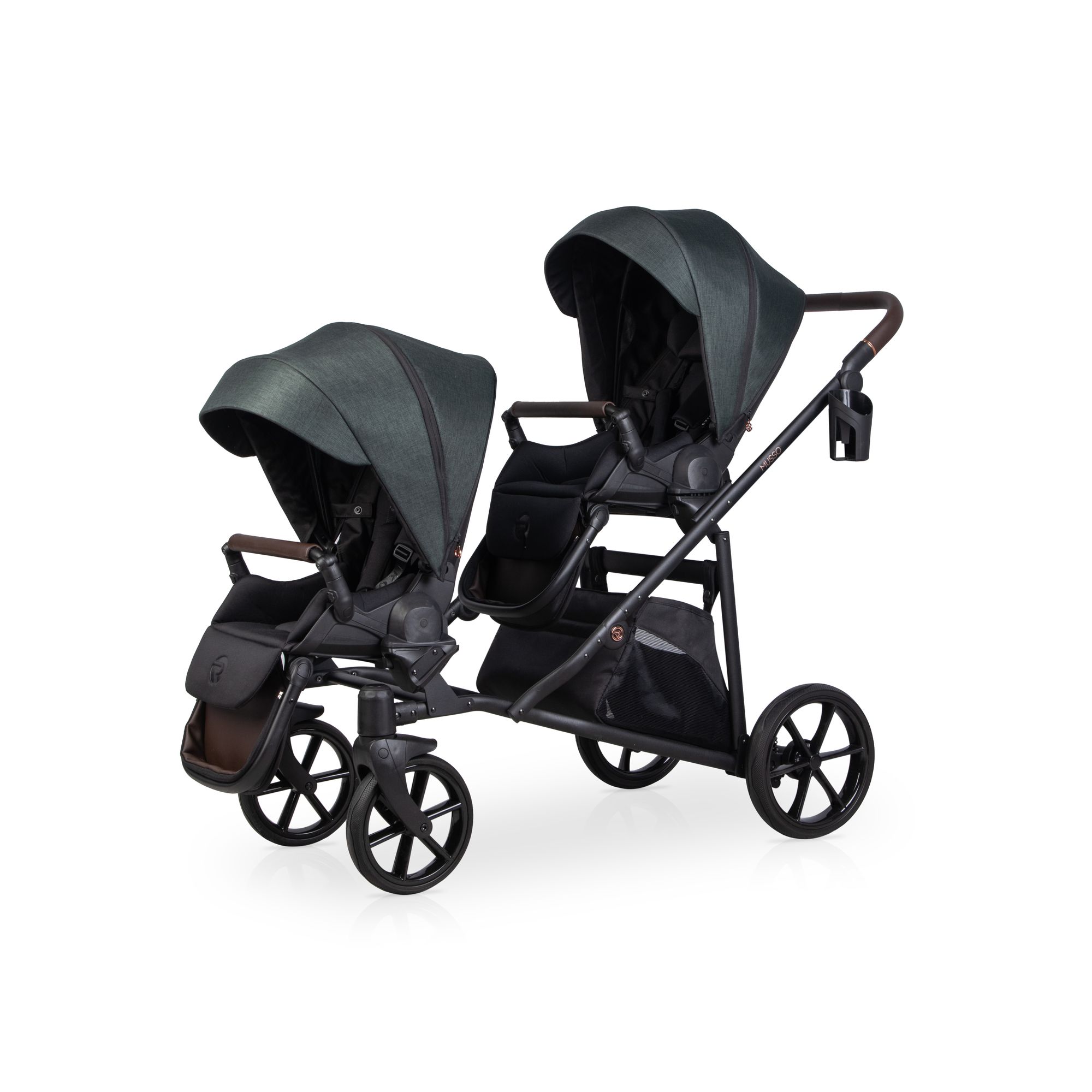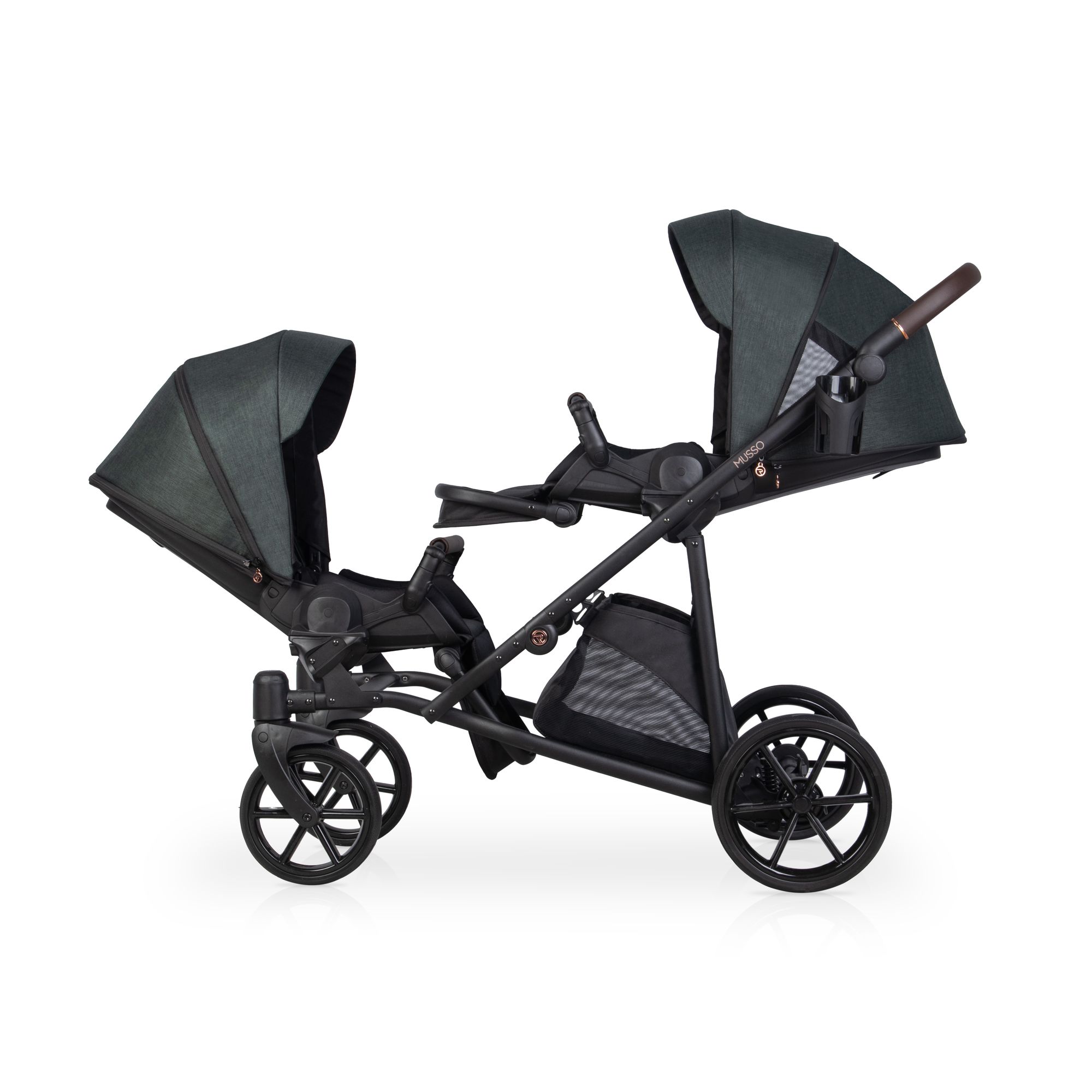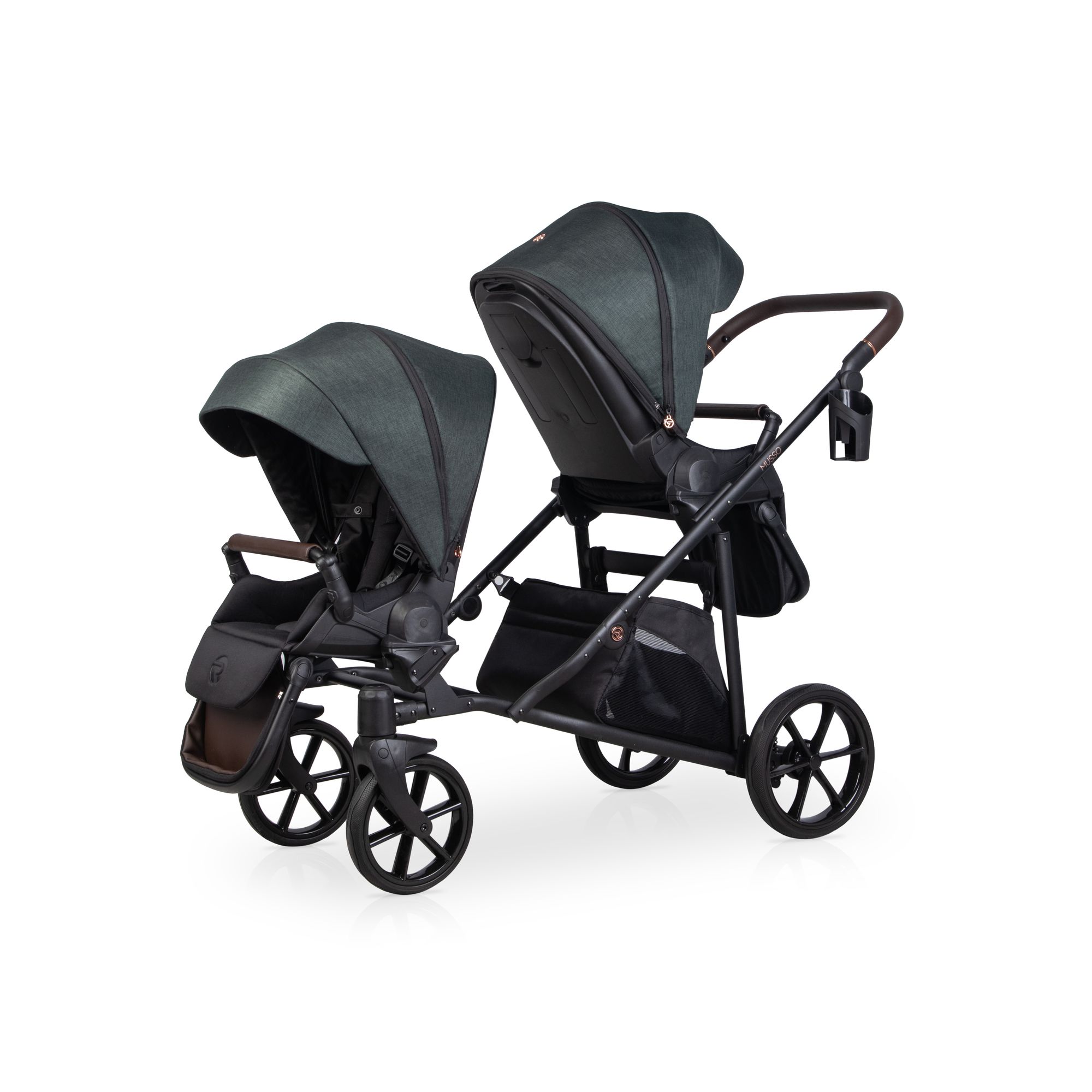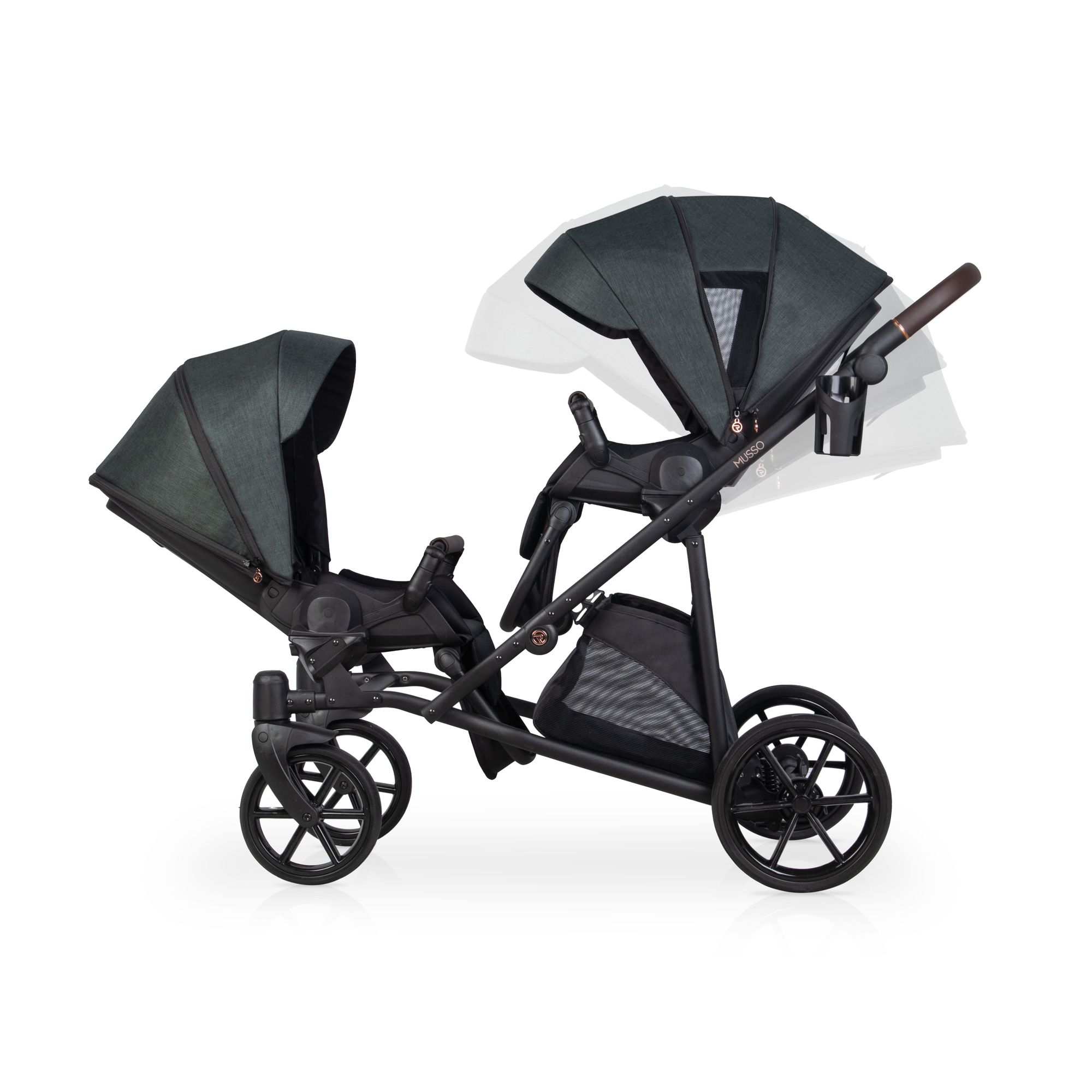 Die beiden Sitze lassen sich flexibel konfigurieren: in oder gegen die Fahrtrichtung, zueinander oder voneinander weg. Durchdachte Details wie magnetische 5-Punkt-Gurte, hochwertige Eco-Leder-Bezüge und eine verstellbare Schieberhöhe machen den Musso zu einem durch und durch praktischen Begleiter für Ihren Alltag mit zwei Kindern.