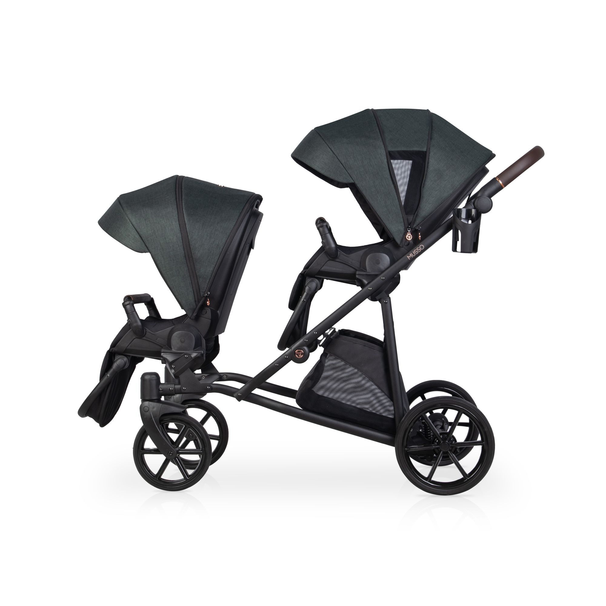 Der Riko Musso ist der perfekte Kinderwagen für Familien mit Zwillingen oder Geschwisterkindern mit geringem Altersunterschied. Als Tandemwagen konzipiert, bietet er zwei vollwertige Sitzeinheiten und eine Vielzahl an Einstellungsmöglichkeiten, um Ihren beiden Kindern maximalen Komfort zu bieten. Dabei bleibt der Musso erstaunlich kompakt, leicht und einfach zu manövrieren.